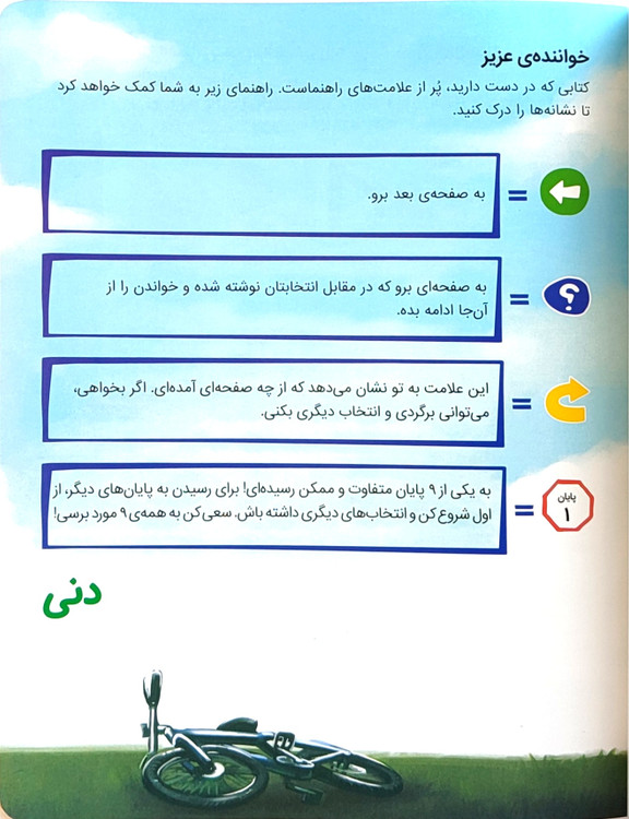 این کتاب شامل ۹ داستان کوتاه است که هر کدام یک موقعیت زندگی واقعی را نشان میدهد: دنی در مسیرش با انتخابهای گوناگونی روبرو میشود و خواننده دعوت میشود خودش تصمیم بگیرد که چه کاری برای دنی درستتر است.