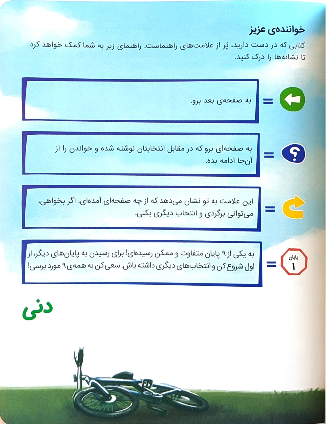 این کتاب شامل ۹ داستان کوتاه است که هر کدام یک موقعیت زندگی واقعی را نشان میدهد: دنی در مسیرش با انتخابهای گوناگونی روبرو میشود و خواننده دعوت میشود خودش تصمیم بگیرد که چه کاری برای دنی درستتر است.