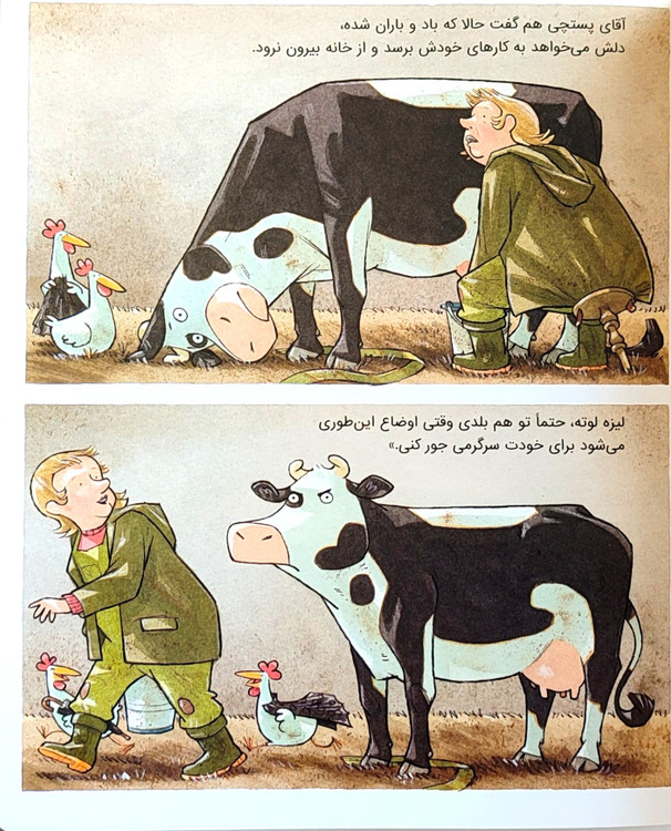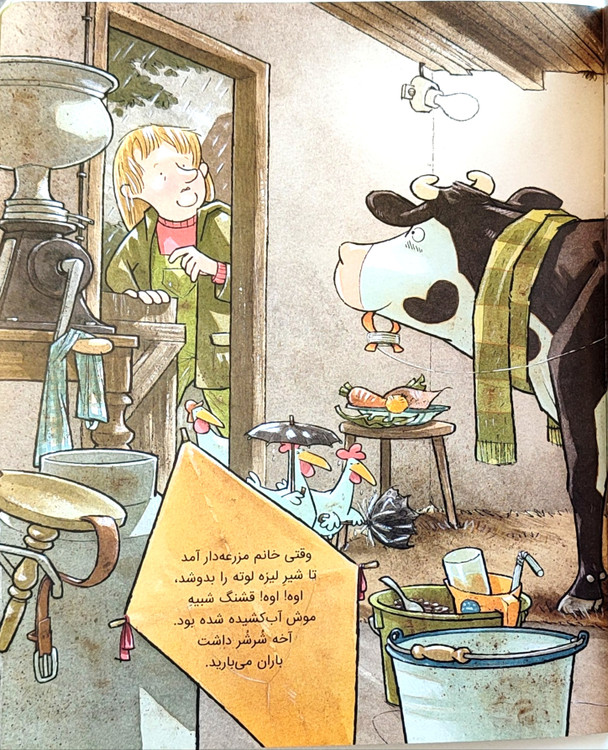 هوا بارانی است و لیزه نمیتواند بیرون برود. او با فعالیتهای خانگی مثل بازی و سرگرمی با جوجهها حوصلهاش را سر نمیبرد.