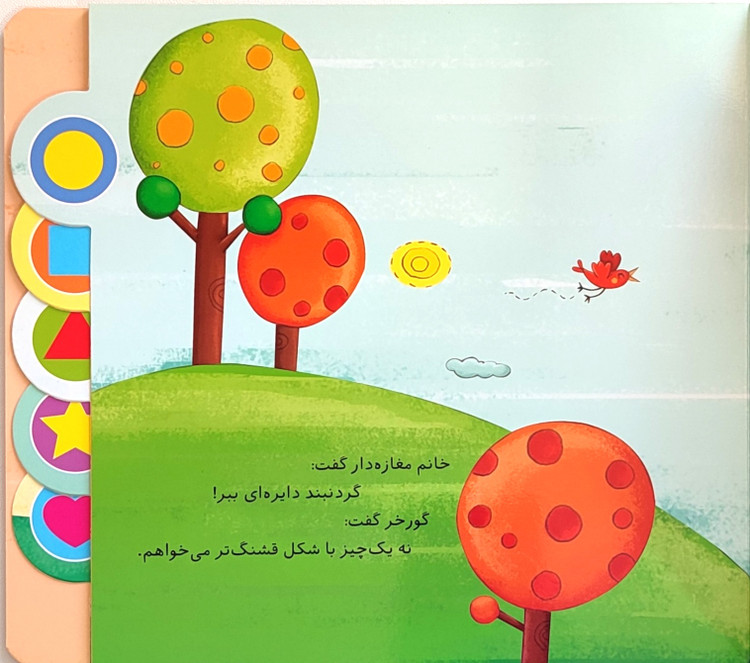 در طول بازی یا فعالیتهای آزاد کودک: وقتی کودک با اسباببازی یا وسایل رنگی بازی میکند، کتاب را همراهش ببرید و مثال بزنید رنگها/اشکال را کنار چیزهای واقعی نشان بدهید