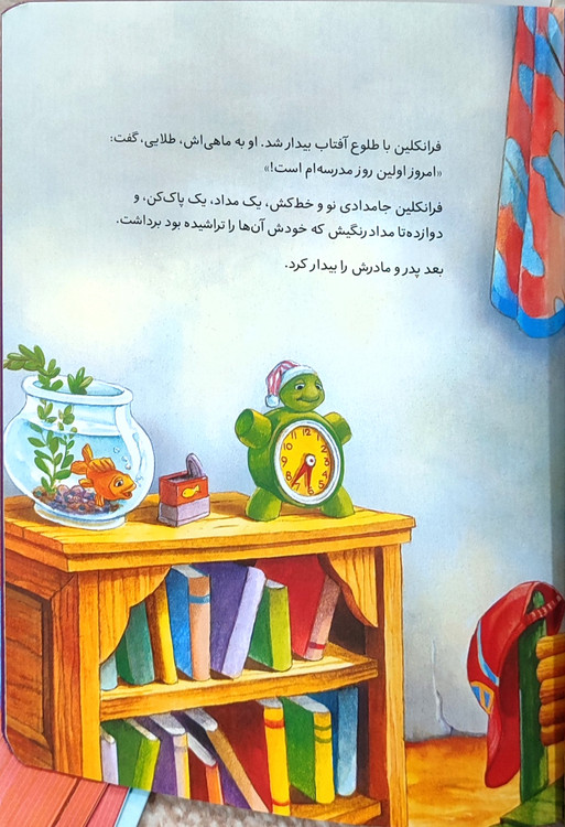 روز اول مدرسهست و فرانکلین با ذوق و البته کمی ترس از خواب بیدار میشه. او مداد و دفتر جدیدش رو آماده کرده، اما ته دلش نگران چیزهاییه که نمیدونه — مثل اینکه معلمش چطوره، یا آیا دوستهای جدیدی پیدا میکنه یا نه.