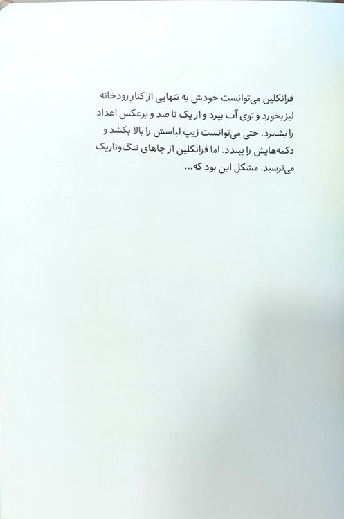 اما یک روز تصمیم میگیرد که باید بر ترسش غلبه کند؛ با کمک دوستانش، فرانکلین قدم به دنیای تاریک میگذارد و یاد میگیرد که تاریکی لزوماً چیزی ترسناک نیست. او میفهمد که وقتی همراهی داشته باشی، میتوانی با ترسها روبهرو بشی.