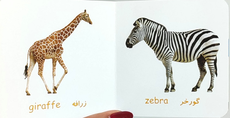 در هر صفحه یک تصویر رنگی واضح از شیء یا حیوان، و در پایین آن نام فارسی و انگلیسیاش نوشته شده.
