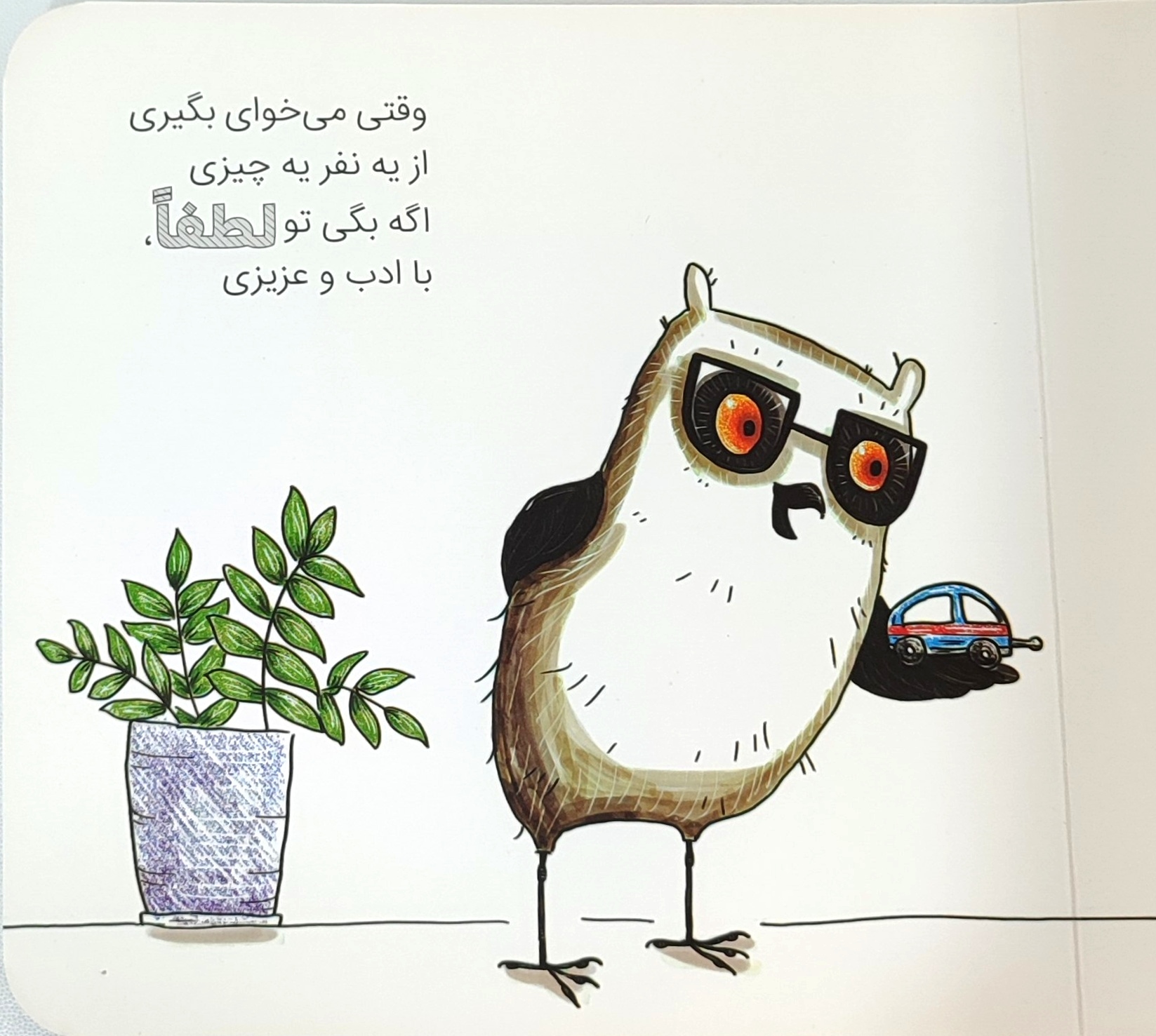 یکی از جلدهای مجموعهی محبوب ویلما جغده که به زبان شعر و تصویرهای شاد، به بچهها یاد میدهد در موقعیتهای مختلف از کلمهی جادویی «لطفاً» استفاده کنند.