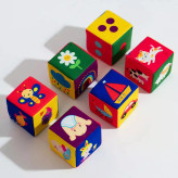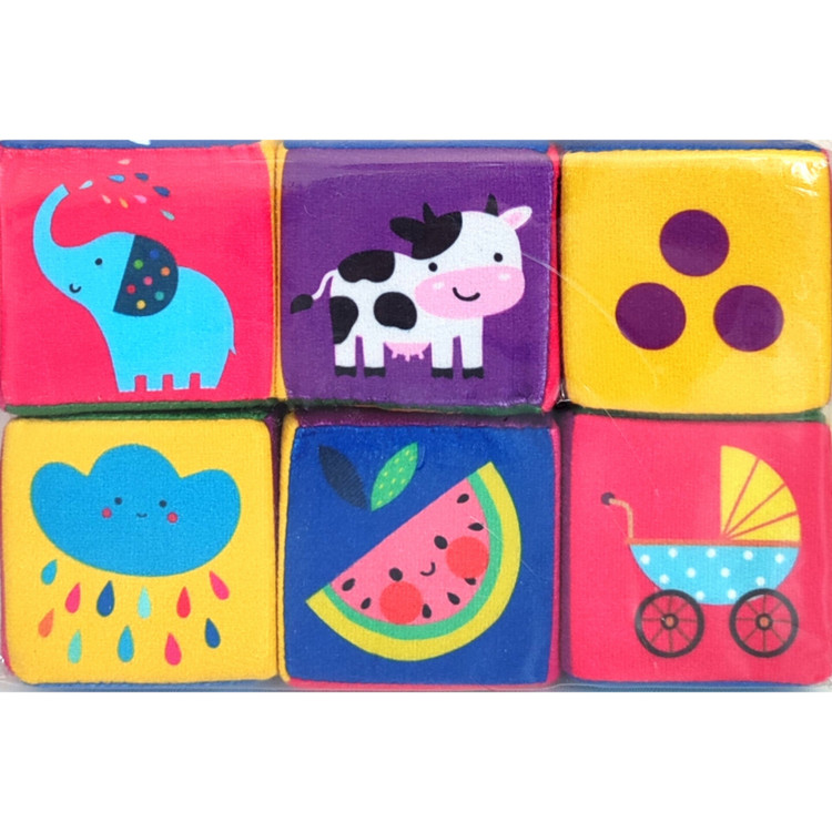 هر بسته شامل ۶ مکعب پارچهای سبک است که در میان آنها چند مکعب دارای جغجغه داخلی هستند و با ایجاد صدا باعث تحریک حس شنوایی و افزایش توجه کودک میشوند. سایر مکعبها ساده بوده و برای بازیهای دیداری و حرکتی مثل رویهمچیدن، شناخت رنگها و حیوانات کاربرد دارند.